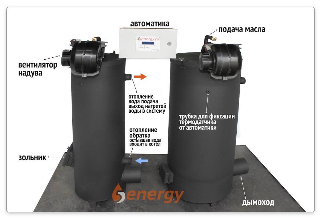 Не всякое отработанное масло подойдет котлу. Нужно безводное, чистое, фильтрованное.