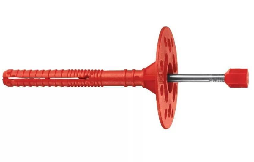 Пластиковыми дюбелями можно крепить теплоизоляцию к крепким поверхностям из бетона, либо кирпича, однако они не походят для фиксации тяжелых утеплителей на полых стенах, либо поверхностях из вспененного бетона.