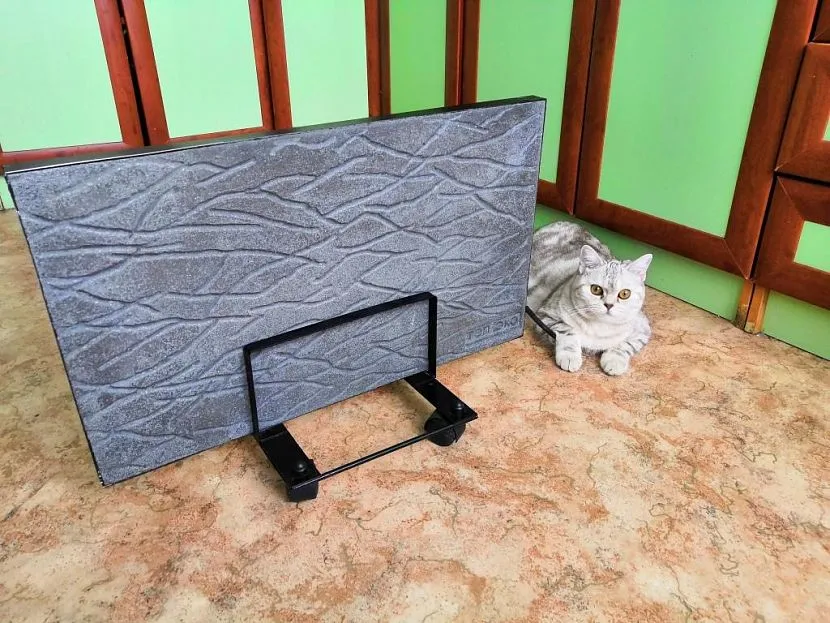 | Внешняя конструкция | Обычно внешний вид представлен панелью, украшенной декоративным теснением или узором. Имеются некоторые модели, у которых внешняя панель гладкая и выкрашена цветом. Размер плиты в толщину составляет обычно 2,5 сантиметра. Оснащена специальными креплениями для стены, также имеет подставку, на которой может устойчиво находиться на полу. |