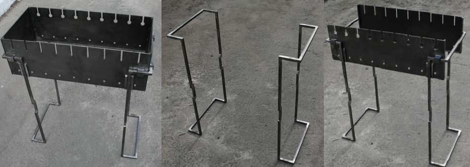 Виды конструкций и чертежи с размерами разборных мангалов из металла, нержавейки