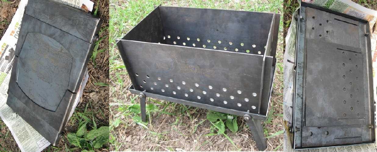 Для путешествий на природу, охоты или рыбалки больше подойдет легкий и портативный складной вариант. В магазинах есть аналогичные изделия, но они сделаны из очень тонкого металла и служат долго. Поэтому переносной мангал лучше сделать своими руками.