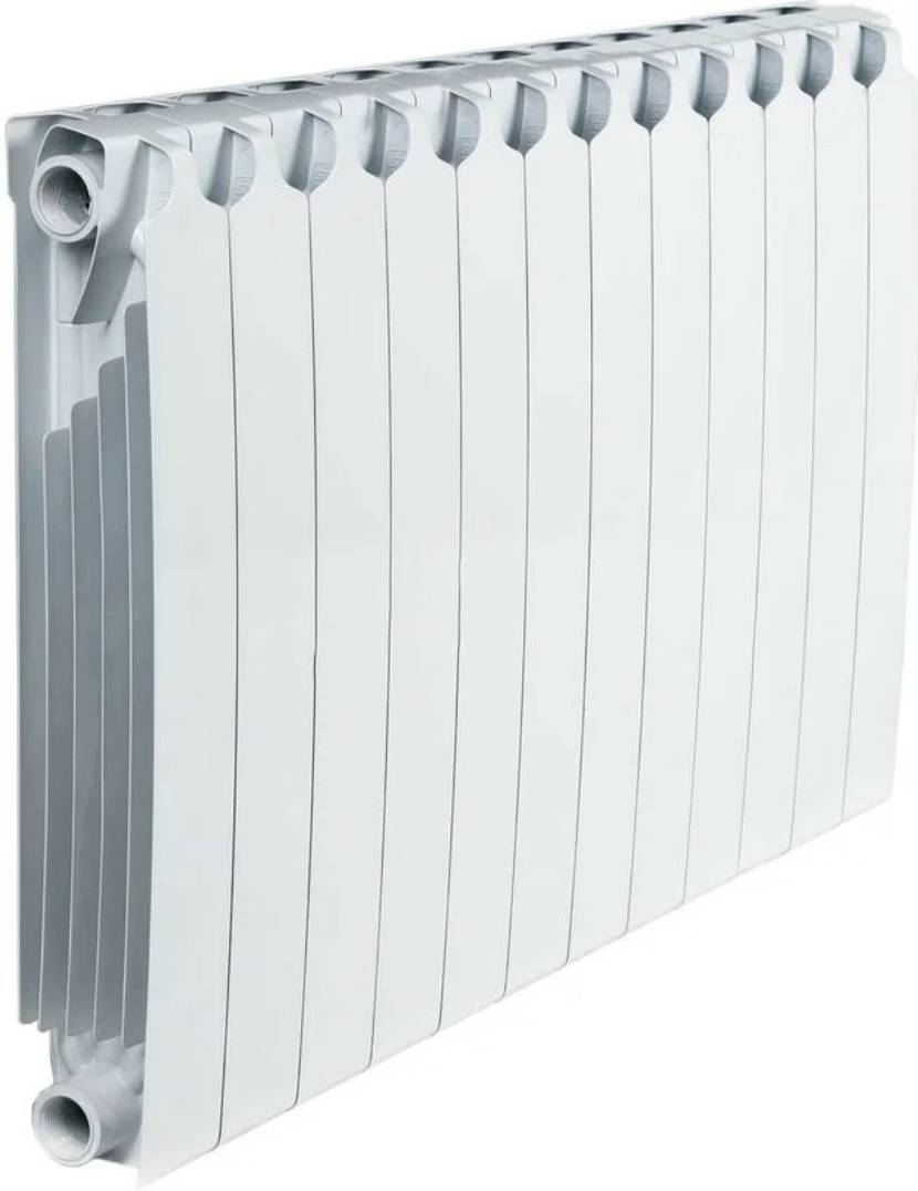 Биметаллический радиатор с площадью обогрева: 1 секция на 4 кв.м. Работает неплохо, т.к. стенки отлиты из стали с алюминием. Очень быстро нагревается и хорошо отдает тепло, хоть и плохо его держит.
