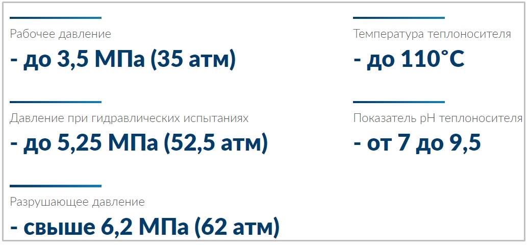 Связано это с тем, что теплоноситель не соприкасается с внутренним слоем за счет уникальной конструкции, поэтому он не подвержен коррозии и хорошо держит перепады давления. Высокотехнологичное межсекционное соединение с применением неплоских силиконовых прокладок, в свою очередь, снижает риск протечек до минимума. По мнению экспертов и пользователей, значимых недостатков нет.