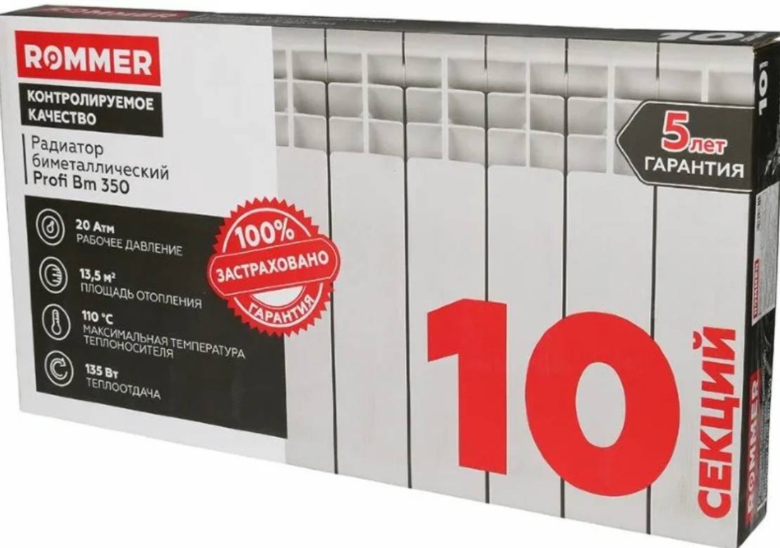 “Роммер” — это лучший производителей биметалликов, по мнению многих покупателей. Толщина металла “выше среднего”, из-за чего радиатор сохраняет тепло более 2 часов. Нагревается за полчаса. Прочность высокая, но давление более 36 атм приведет к разрыву.