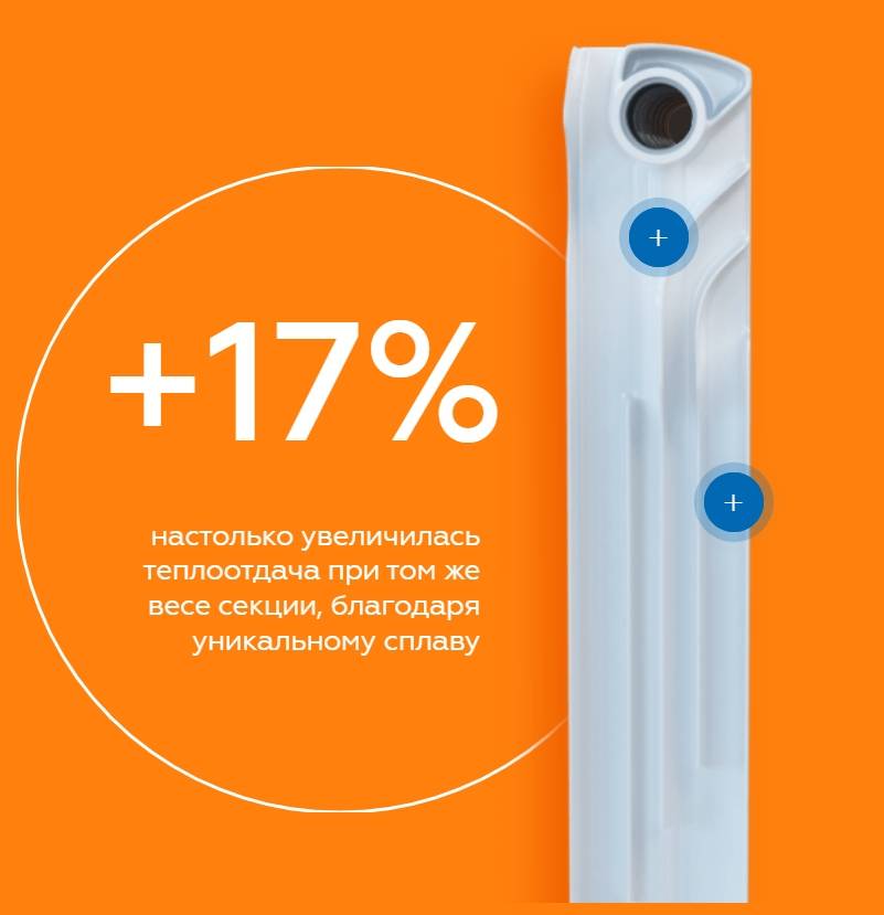 В топ биметаллических радиаторов модель попала из-за своих преимуществ: