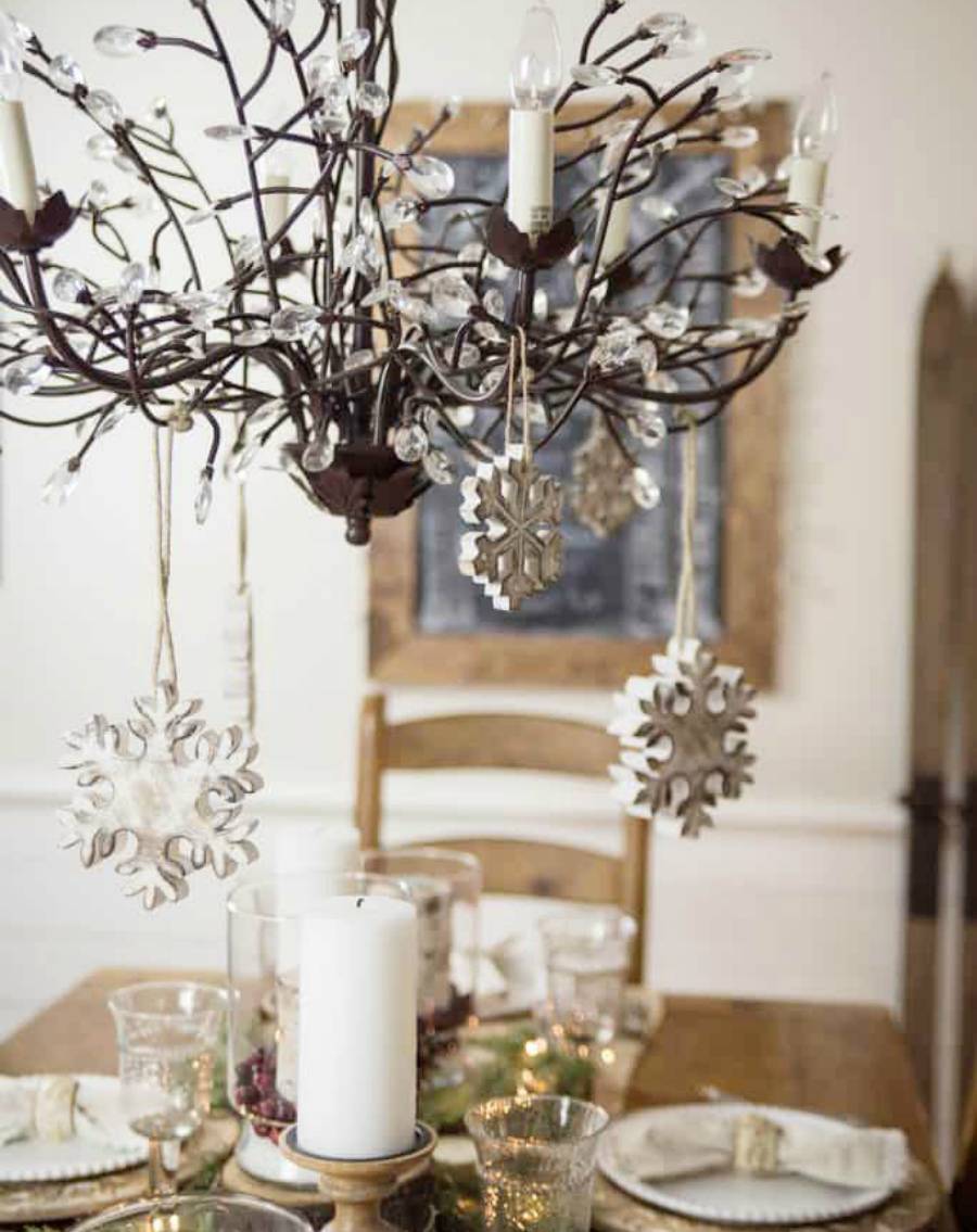 Не спешите прятать украшения в ящик, они ведь не мешают вам и не путаются под ногами. Особенно если некоторые из них подвесить на люстру. От такого декора (пусть это даже снежинки) станет намного уютнее и веселее на душе.