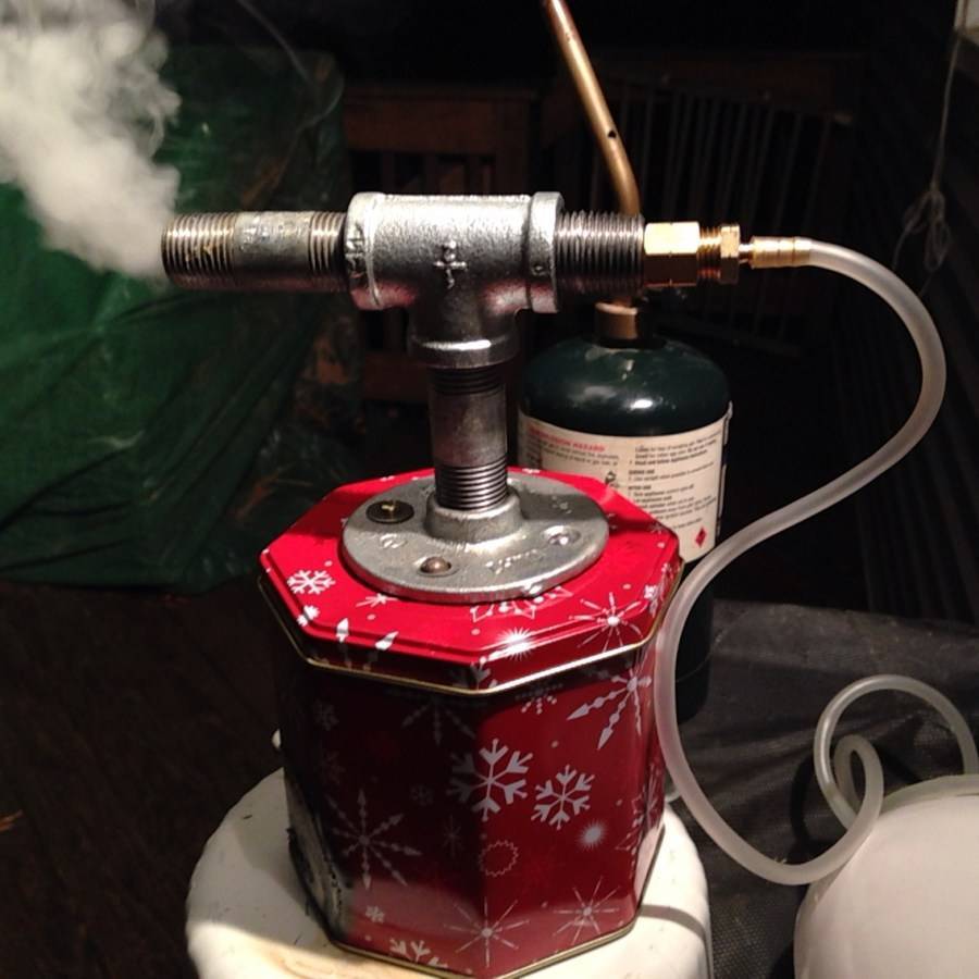 - банку, например, от томатной пасты, использовать как ёмкость под щепу. На дно нужно уложить пучок щепы и зажечь горелку самой маленькой мощности;