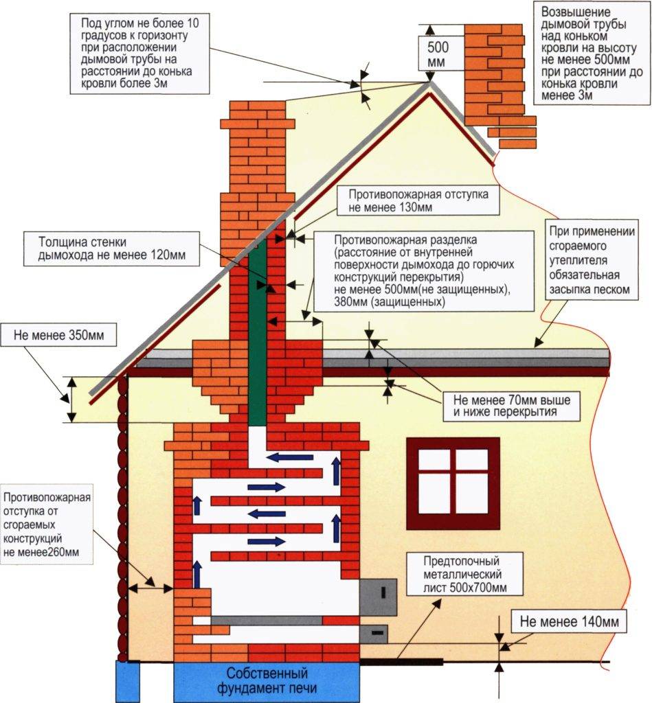 Кладку своими руками может освоить каждый желающий, если следовать инструкции. В процессе создания печи стоит учесть, насколько ее расположение соответствует уровню теплоотдачи. Дымовая труба не должна нарушать несущие конструкции чердачного перекрытия при выводе на улицу.
