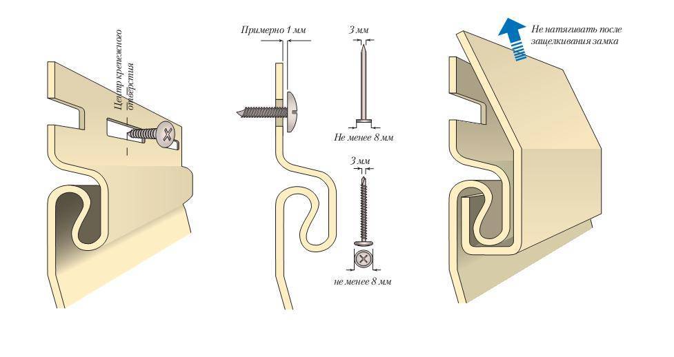Их расход при отделке дома сайдингом рассчитывается исходя из шага между этими метизами на планках в 30 см. Крепеж в деревянную рейку или металлический профиль каркаса должен входить минимум на 20 мм. При этом между его шляпкой и ПВХ вагонкой следует оставлять пространство в 1 мм. Если этого не сделать, то виниловая обшивка дома при изменении температуры на улице покоробится и пойдет волнами.