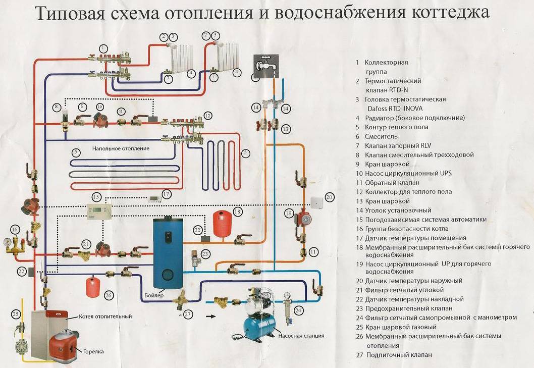 В зависимости от вида выбранного контура отопления (и котла) в ней могут быть и другие составные части.