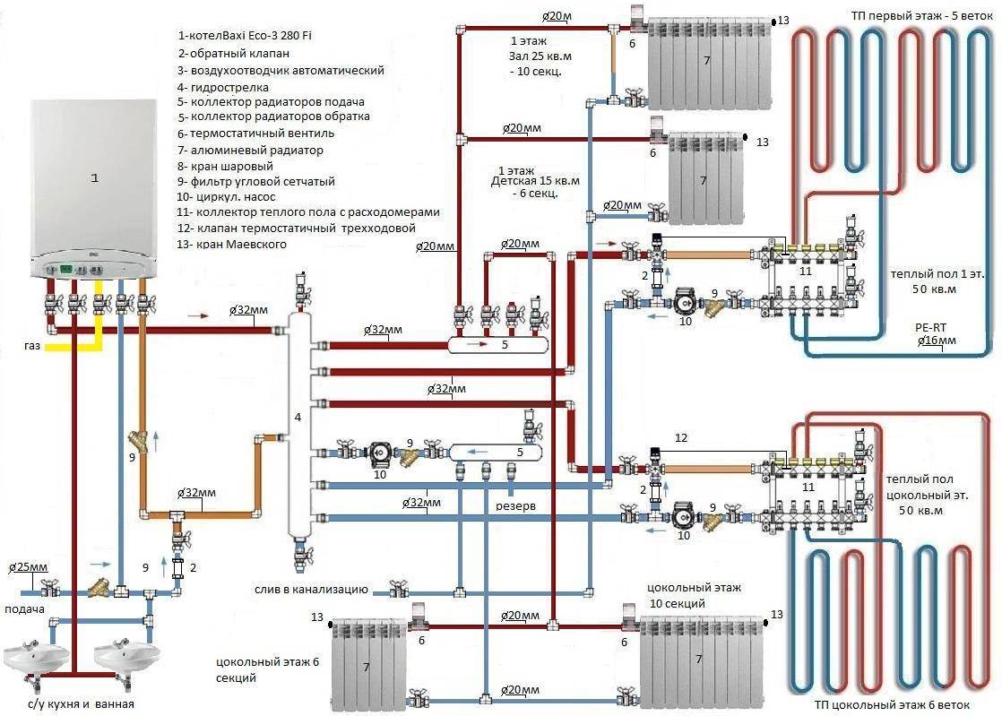 Правильная обвязка газового котла отопления — схема и фото Если вас интересует, как делается правильная обвязка газового котла отопления, схема, приведенная на этой странице, поможет вам разобраться в этом вопросе. Обычно устанавливается недалеко от оборудования. Связано это с тем, что нередко в местах пайки внутренний диаметр заужается, а это создает ненужное гидростатическое напряжение и понижает КПД.