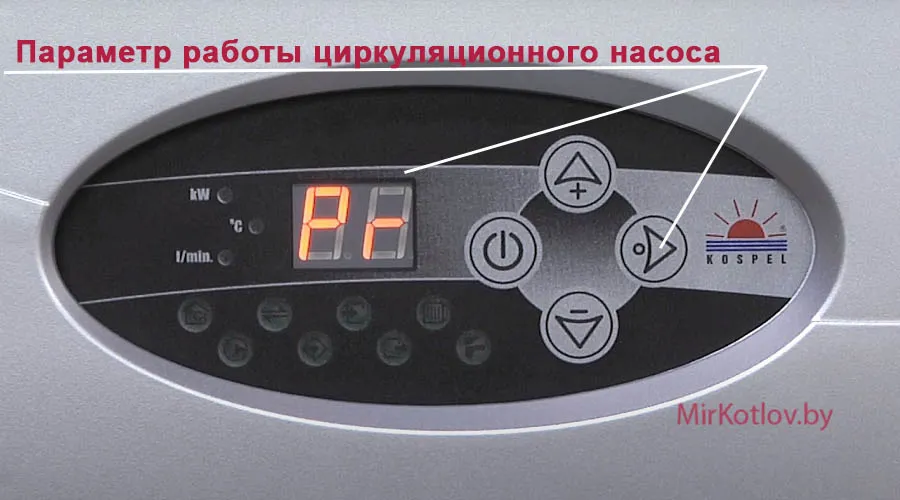 Следующий параметр — это параметр работы циркуляционного насоса. Он может работать в автоматическом режиме PA или постоянном режиме Pr. При автоматическом режиме, насос выключится после 3-х минут с момента размыкания контактов NA или RP.