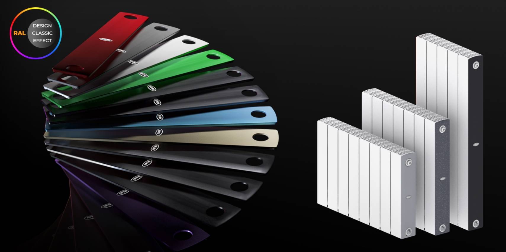 Дизайнерская серия радиаторов от “Рифар”. Характерная черта — черный цвет, что встречается редко.