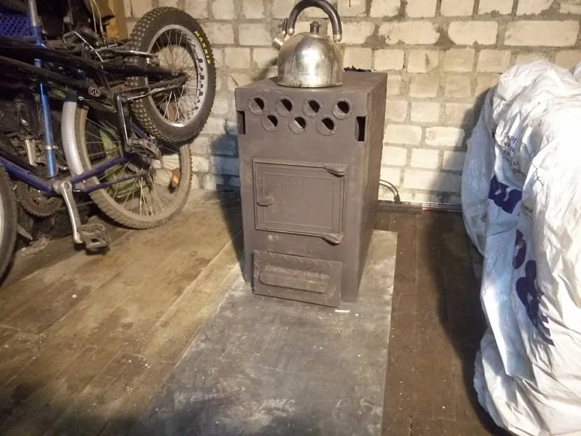 Буржуйка может работать на дровах, угле, брикетах, проста и экономична в использовании. Но минусов у этого обогревателя для гаража много: