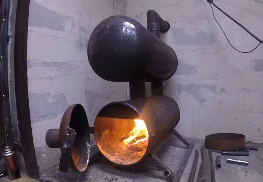 Традиционная печь состоит из железной емкости с дверцей и трубой для выхода дыма, которая выводится наружу помещения. Все разновидности могут выполняться из подручного материала, но основные элементы будут одинаковыми.