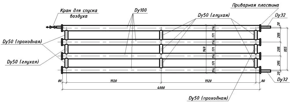 Внимание! Все сварочные швы нужно делать сдвоенными, так как в топке температура не ниже 1000 градусов. Если проваривать обычные швы, то есть вероятность, что это место быстро прогорит.. Чертежи регистра выполните в соответствии с размерами печи дома