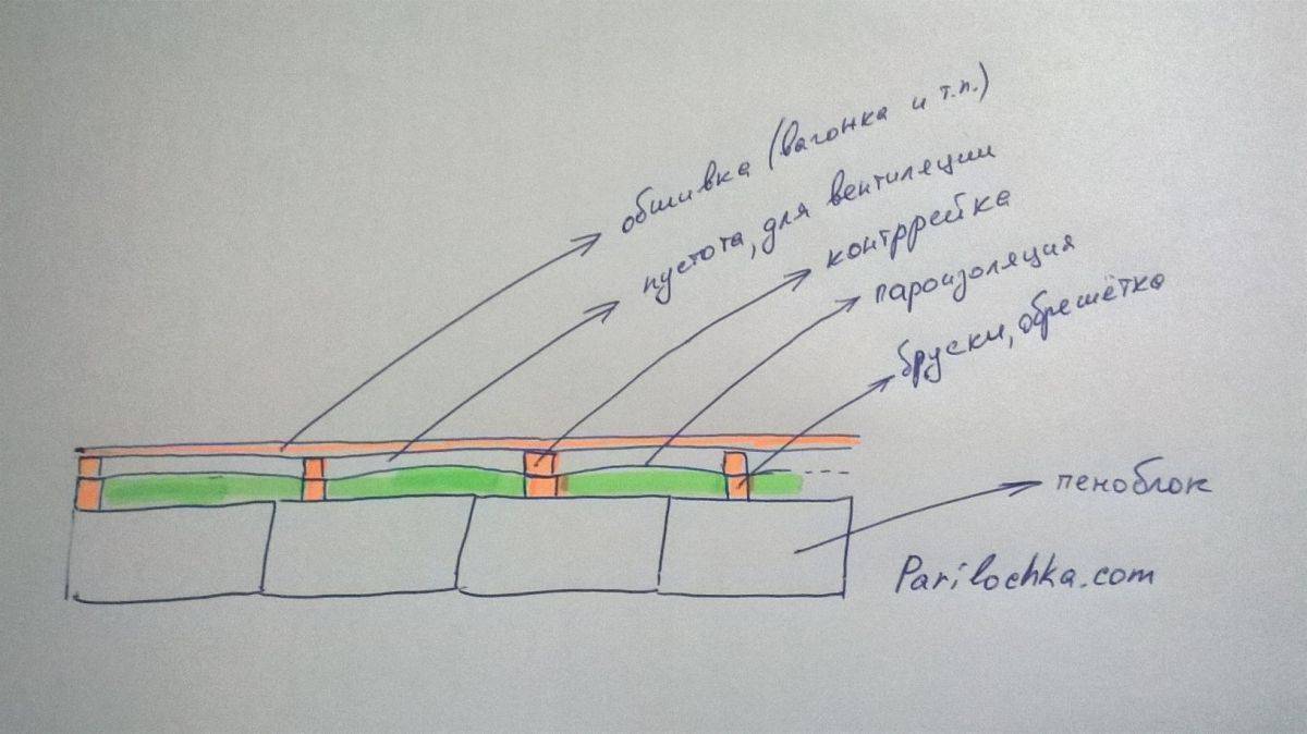 Монтаж утеплителя с обрешеткой производится по следующему принципу: