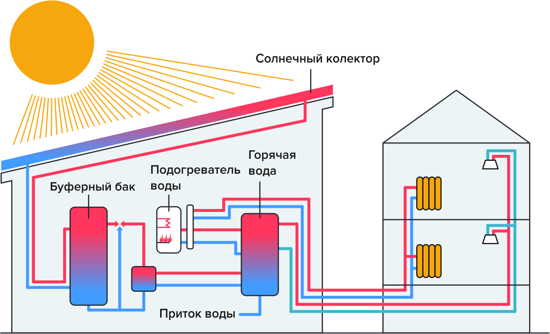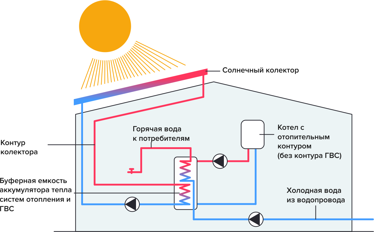 Гелиоустановки для систем горячего водоснабжения и отопления
