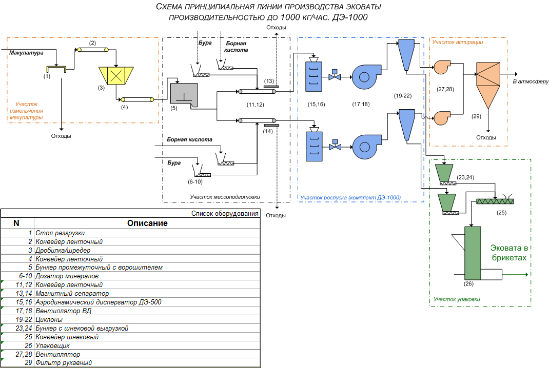 Эковата изготавливается методом серийного производства. Для линии нуже будет ряд специфического оборудования, среди которого: