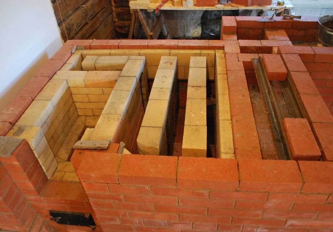 Главное требование к кладке печи — это герметичность. Именно поэтому на печь идут только целые кирпичи без каких-либо трещин, а швы делают тонкими — не больше 5 мм. Не стоит добиваться воздухонепроницаемости при помощи обмазывания глиной всех стенок печи с внутренней стороны — это снизит теплопроводность и увеличит отложения копоти и сажи. Помимо этого, глина отслаивается и забивает каналы внутри печи, чистить которые будет достаточно проблематично. На сегодняшний день применяются следующие методы: