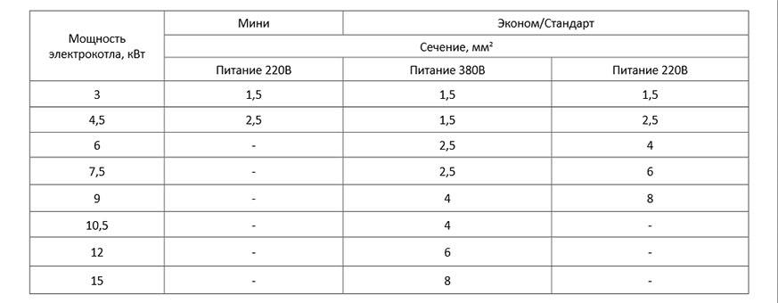 Промышленность выпускает разные типы ЭК начиная с мощности в 2.5 кВт, которые способны обеспечить обогрев небольшого дачного домика площадью до 25 м2 размещенного в центральных районах России. Выбирая мощность электрокотла для отопления частного дома свыше 6 кВт, нужно учитывать, что для его работы потребуется трехфазная система электропитания.