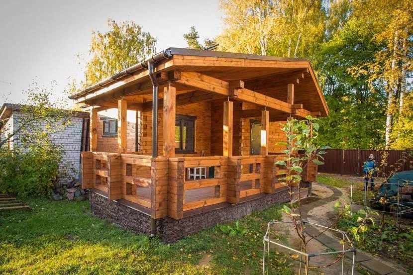 Уютная дачная банька с верандой, построенная из бруса. Практичная веранда вмещает небольшой столик, за которым так приятно устраивать чаепития. Источник 2gis.ru