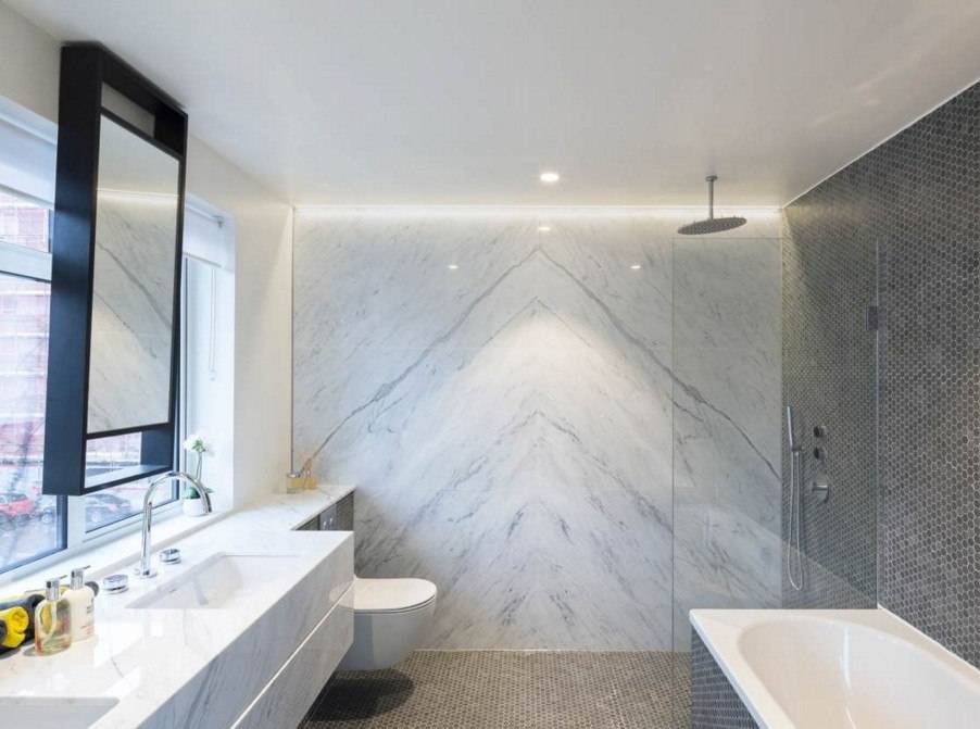 Искусственный камень. Нечасто в ванной комнате встречается отделка стен искусственным камнем. Но, несмотря на это, он очень хорош в «банном» деле. Его можно комбинировать с другими материалами, что придает помещению свой шарм. Но стоит учитывать, что такая стена очень сложна в ремонте при его необходимости в будущем.
