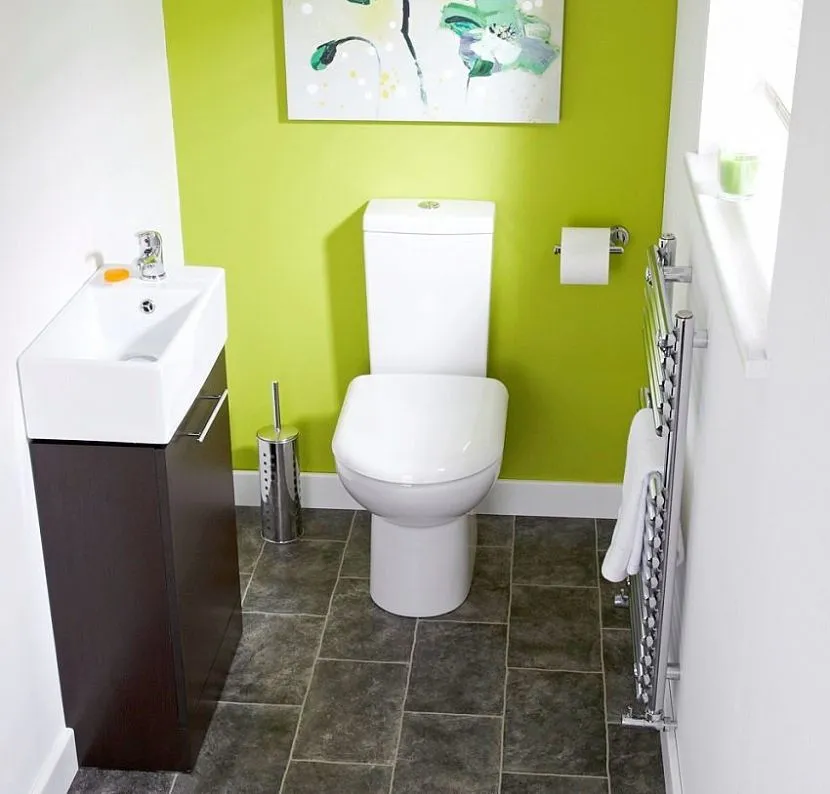 Пастельный салатовый в уютной маленькой туалетной комнатеИсточник vip-1gl.ru