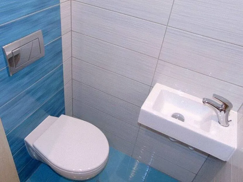 В интерьере маленького санузла часто используют унитаз с инсталляцией. Это специальное инженерное приспособление, при помощи которого навесное оборудование в туалете (унитаз, биде, раковина) крепится к стенам, а иногда дополнительно к полу. Все коммуникации и сливной бачок остаются невидимыми, нагрузка ложится не на пол, а на специальный модуль, который способен выдержать до 400 кг.