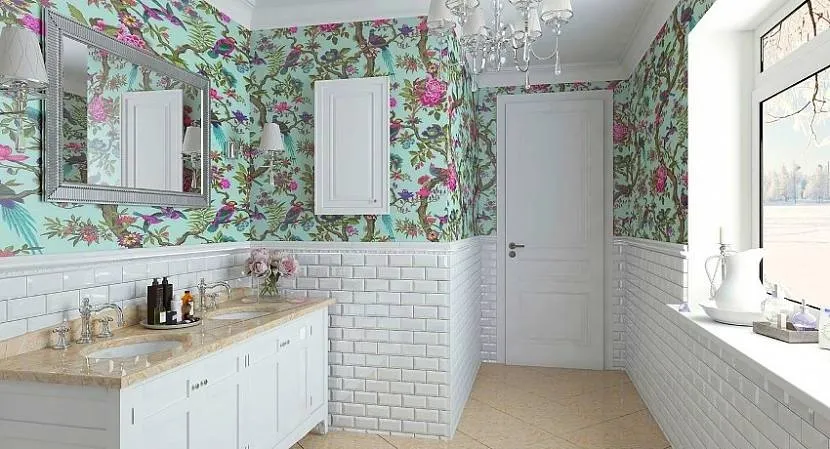 - могут использоваться обои для кухни, если в продаже сложно найти подходящие варианты для ванной — смотрите как рассчитать обои на комнату;