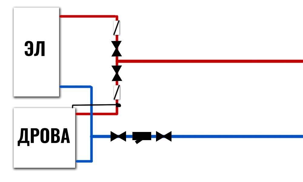 Для совмещения систем дровяного и газового котла используются такие устройства:
