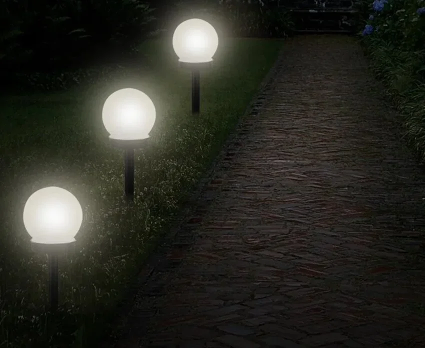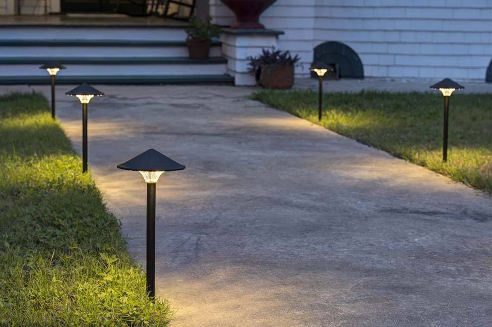 Эти светильники освещают дороги и тропы на участке. Таких приборов, как правило, требуется несколько вдоль всей дорожки. Такой подход позволяет максимально обезопасить путь. Существует несколько способов крепления: их можно подвесить, воткнуть в землю или же просто поставить на поверхность. Свет в таких приборах всегда направлен вниз.