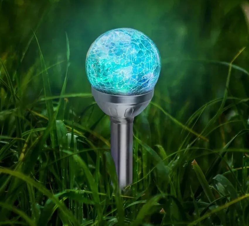 Столько же длится свечение при полной зарядке аккумулятора. Этот светильник, благодаря мультицветности, создаст атмосферу сказки и волшебства саду, гармонично посветит клумбы и цветники. Цена – 329 рублей за штуку.
