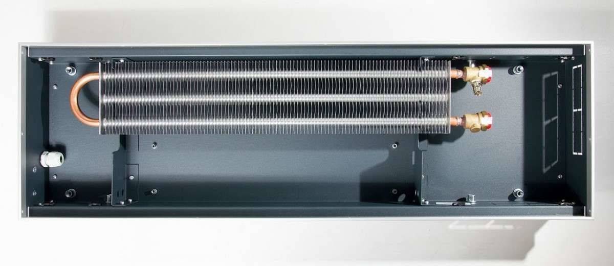 Устройство и внешний вид внутрипольного конвектора с вентилятором