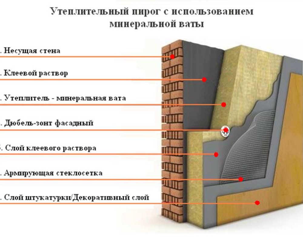 Схема – утепление кирпичного дома снаружи минватой под сайдинг
