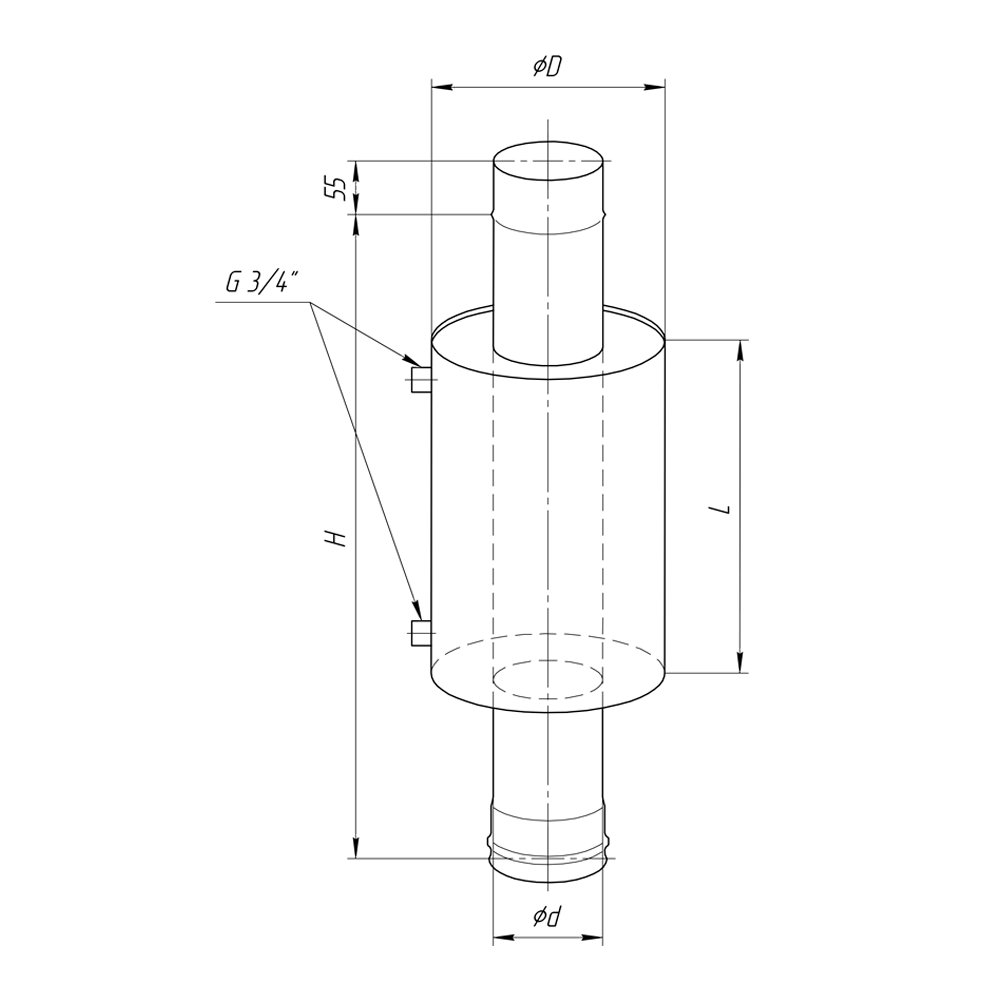 - Диаметр внутренних стенок бака должен обеспечивать плотную посадку теплообменника на дымовой патрубок. Диаметр внешних стенок бака может превышать диаметр внутренних в 1,5-2,5 раза. Такие размеры обеспечат быстрый прогрев и хорошую циркуляцию теплоносителя. Печи с низкой температурой дымовых газов лучше комплектовать баком, имеющим небольшие размеры, чтобы ускорит его прогрев и избежать образования конденсата и ухудшения тяги.