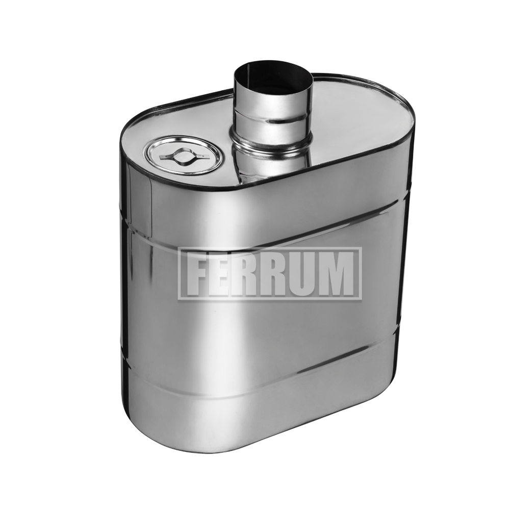 Теплообменник в виде бака, расположенного вокруг дымохода, делают из нержавейки или оцинкованной жести. При этом следует учесть конструкцию печи. Если в ней предусмотрен режим дожигания дымовых газов, и температура дыма на выходе из печи не превышает 200 градусов, можно использовать любой материал для изготовления теплообменника.
