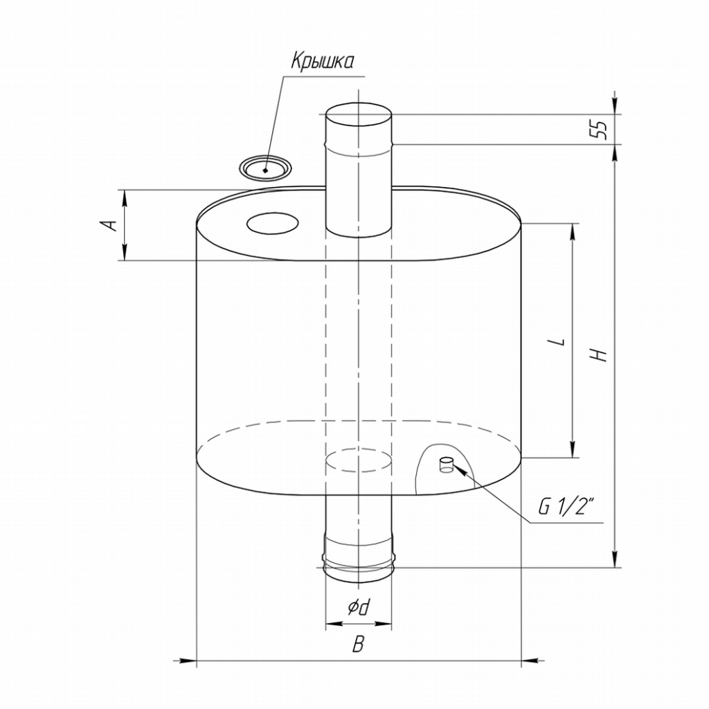 - Работы начинают с подготовки чертежа. Размеры бака, устанавливаемого на дымоход, зависят от диаметра трубы и типа печи. Печи простой конструкции с прямым дымоходом отличаются высокой температурой дымовых газов на выходе, поэтому размеры теплообменника могут быть достаточно большими: до 0,5 м высотой.