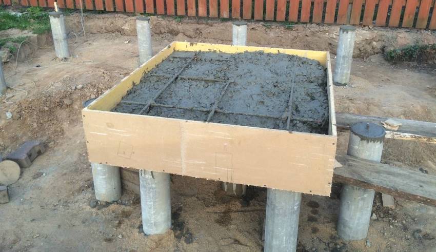 Для дополнительного фундамента понадобится вырыть яму, на дно которой утрамбовывается щебёнка, вставляются арматурные прутья, и производится залитие специального состава.