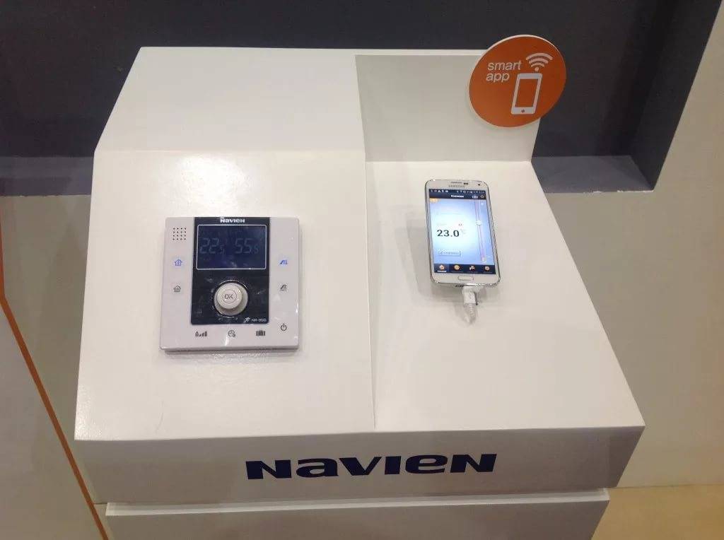 Самой главной особенностью котлов Navien можно считать блок управления в виде небольшой коробочки, которая вынесена наружу. На ней есть дисплей и кнопки, которые позволяют управлять работой устройства. К примеру, на дисплее отображаются данные о неисправностях или ошибках в работе, температура воды, воздуха и теплоносителя. Также на нем можно выставить время. Кнопки позволяют самостоятельно выставить режим работы котла, температуру и включить или выключить оборудование.