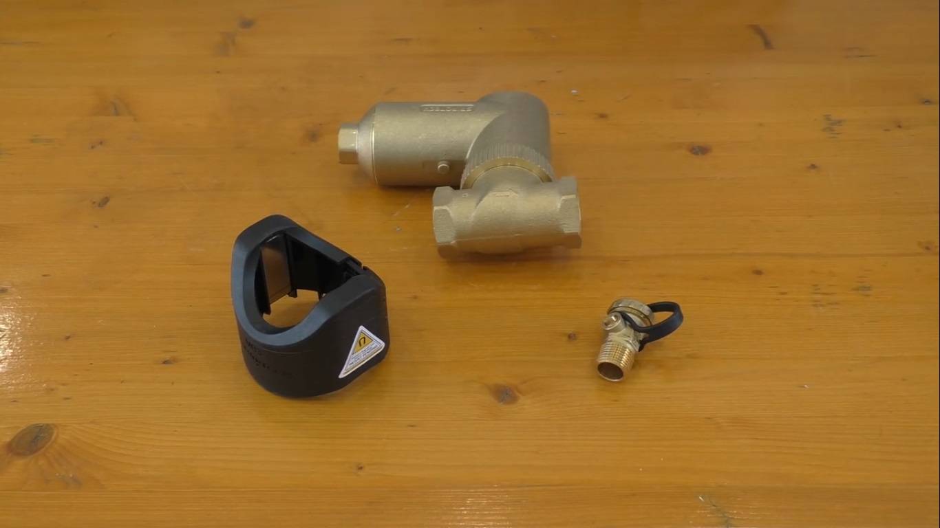 Это устройство самостоятельно выводит воздух из системы отопления. Устанавливается либо вертикально или горизонтально. Состоит из латунного корпуса, поплавка, выпускного клапана и шарнирного рычага. Чтобы теплоноситель не мог протечь через него, воздухоотводчик оснащён защитным колпачком.