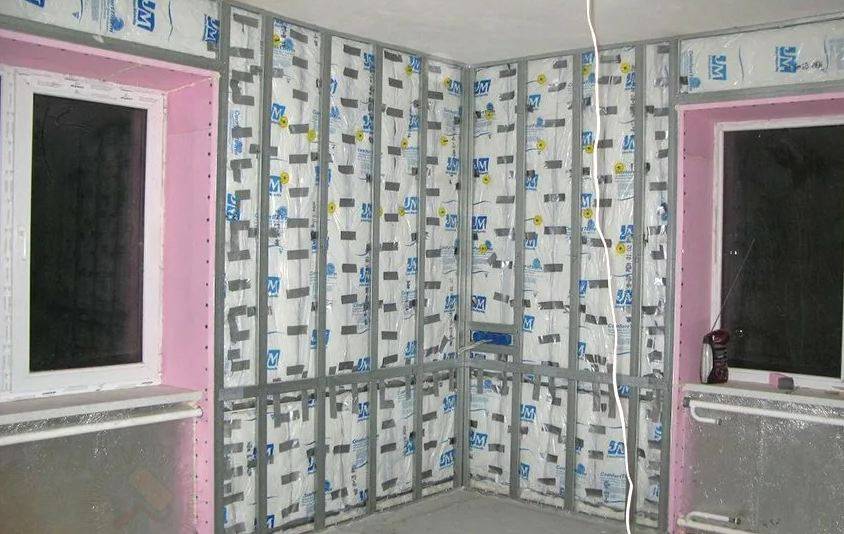 При внутреннем утеплении стен необходимо устанавливать пароизоляционный и гидроизоляционный слой.