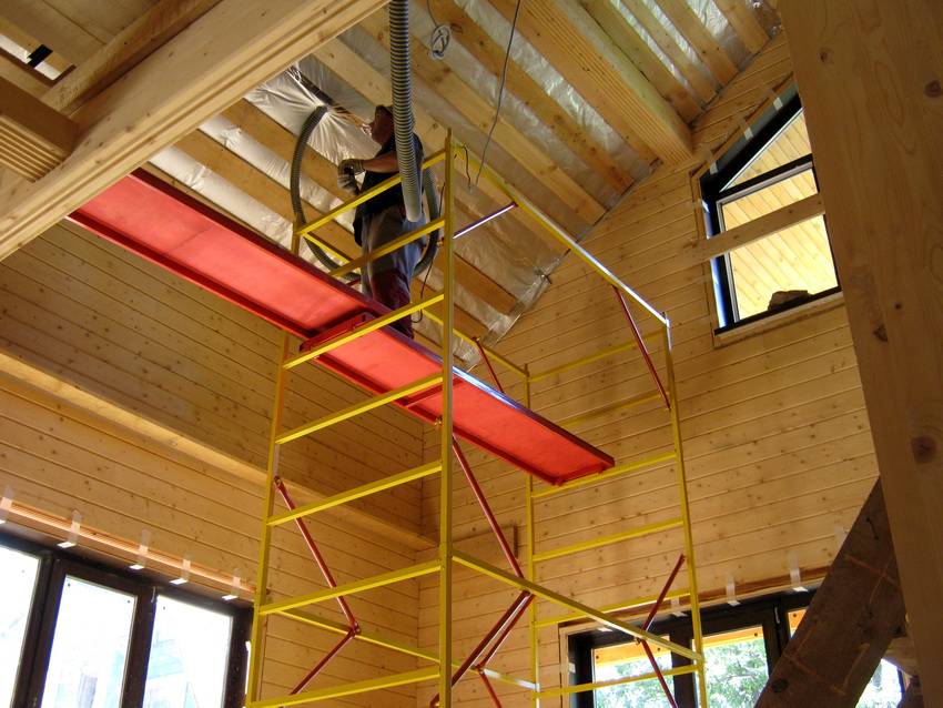 К недостаткам следует отнести необходимость использования специального распылителя. Это может стать серьёзной проблемой для тех, кто планировал выполнить утепление крыши изнутри своими руками, так как такое оборудование стоит достаточно дорого. Кроме того, необходимо обладать достаточными знаниями и иметь определённые навыки, чтобы самостоятельно нанести качественное плотное покрытие.