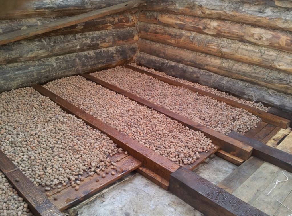 - Практически все пространство под баней засыпают толстым слоем керамзита или шлака. Для вентиляции оставляют 20-25 см между верхним краем засыпки и балками перекрытия.