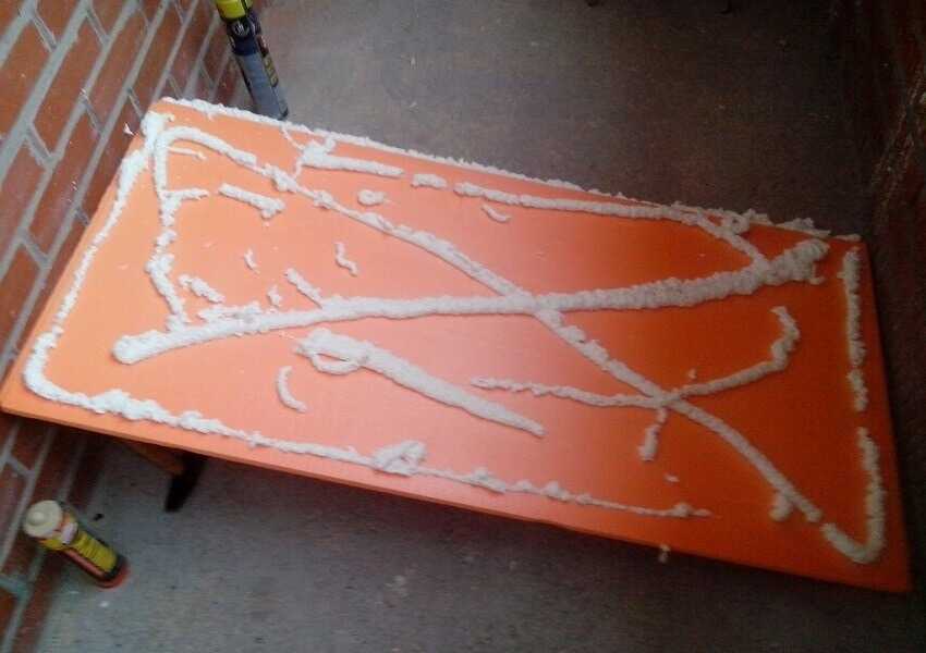 - После застывания пены (минимум через сутки) ее излишки удаляются при помощи ножа.