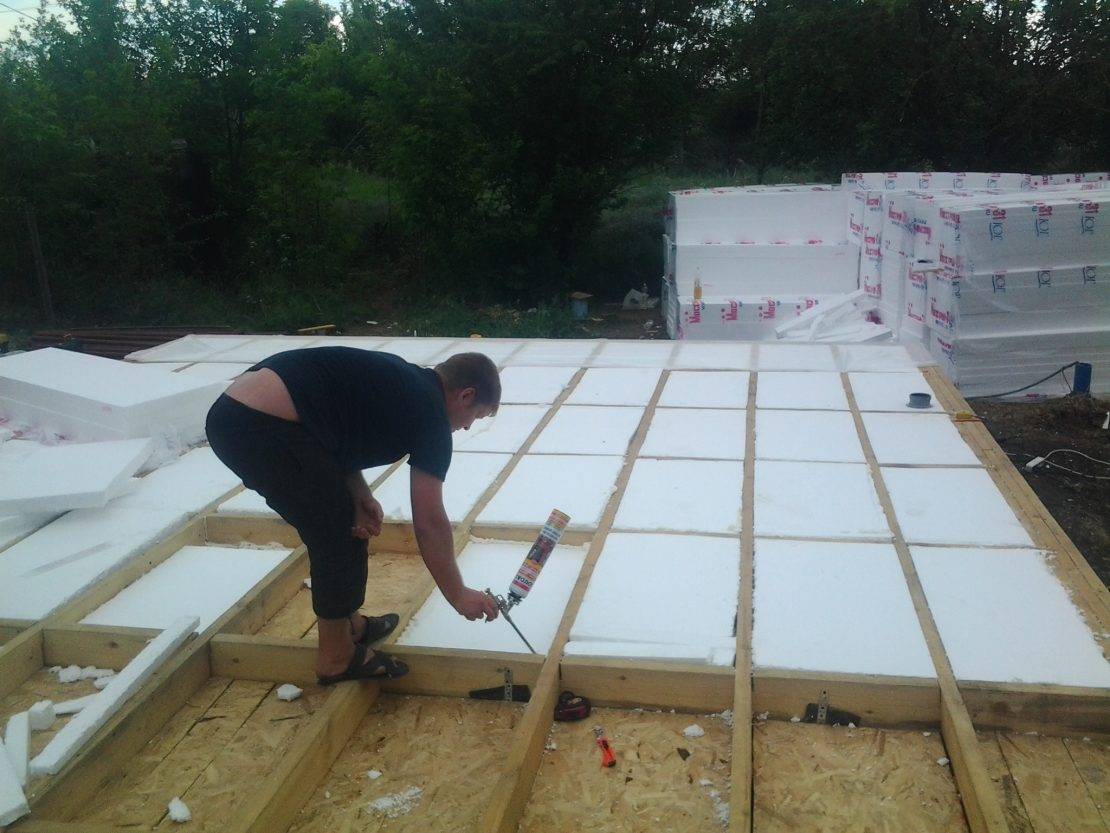 - уложить пенопластовые плиты, стыки между ними заполнить монтажной пеной;