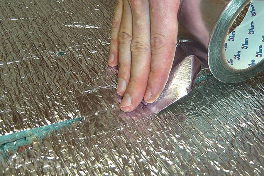 - Обработка щелей алюминиевым скотчем.