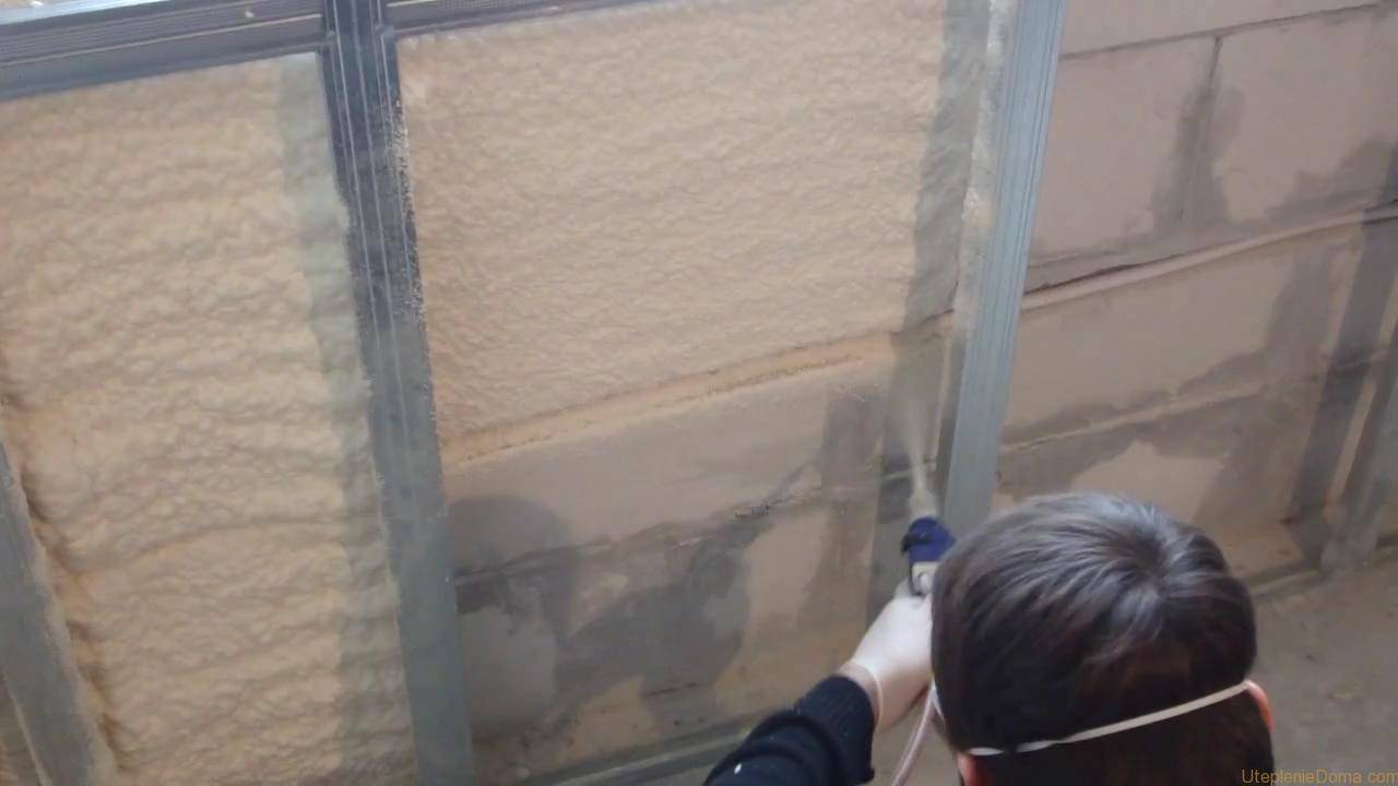 пенополиуретан – пенообразная смесь, которая наносится при помощи специального оборудования и, скрепляясь с поверхностью стены, образует изоляционный слой, достаточно надежно защищаемый конструкцию от холода и мороза. Составы пенополиуретана необходимо наносить специальными станками, имея при этом определенный опыт работ в данном направлении;