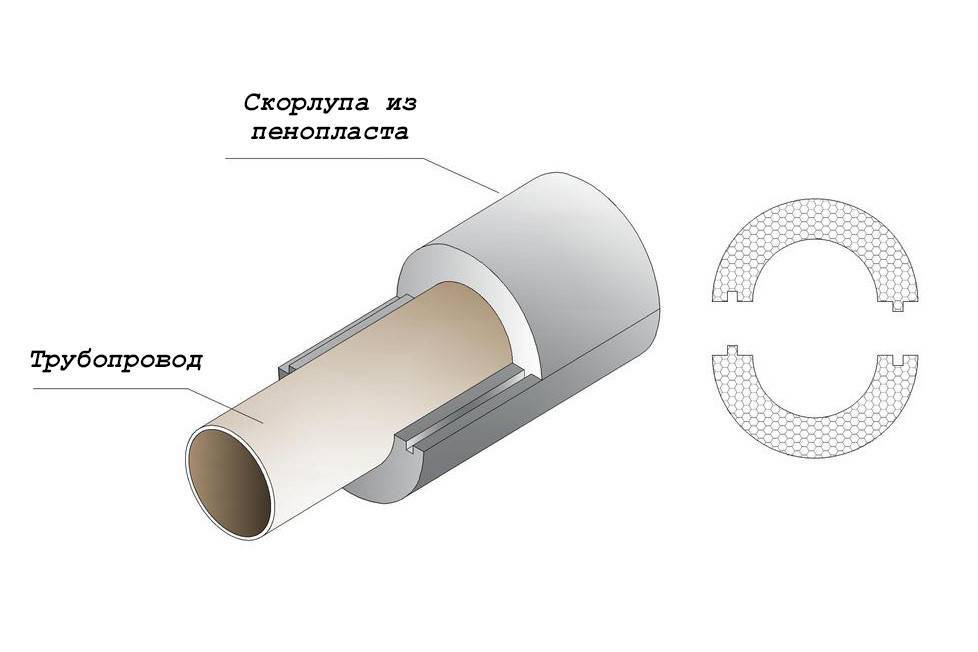 - в пенопластовой скорлупе трубы не промерзают, не покрываются конденсатом;