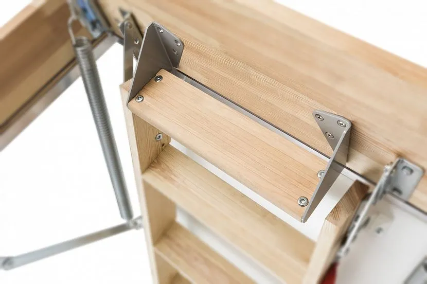У каждого вида лестницы есть свои особенности. Например, лестница вида Smart–lws выполняется исключительно из сосновой древесины, она дополняется крышкой с теплоизолятором, а также обладает люком толщиной в 36 мм. Модель Komfort lwt изготавливается не просто из сосны, а из древесины высшей категории, и также обладает люком, толщина которого 36 мм. Такая конструкция будет просто идеально смотреться на светлом потолке. Как правило, изделие состоит из 3-4 секций, а также бокового металлического поручня, для удобства эксплуатации и безопасности.